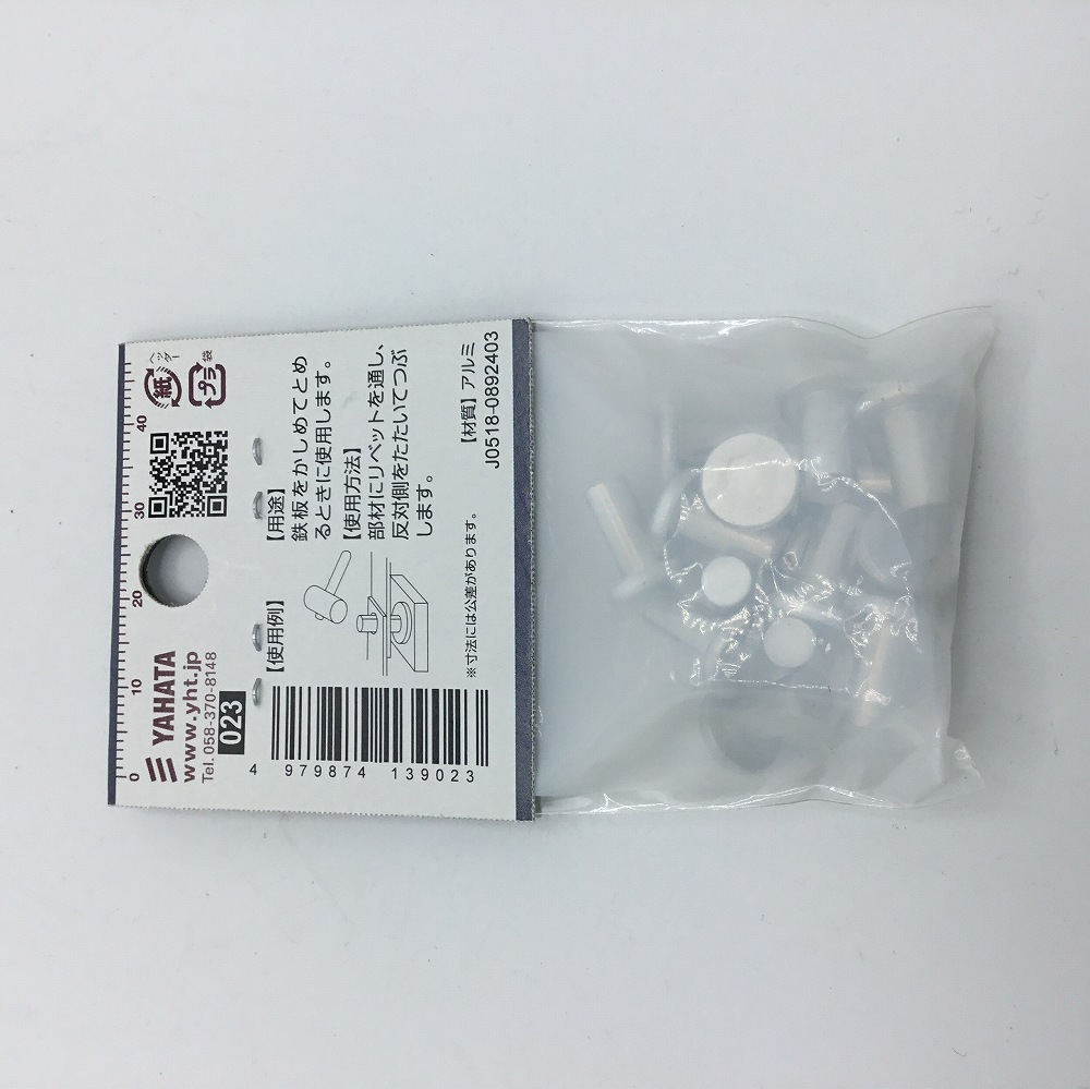 【八幡ねじ】 アルミ平リベット 5×15×10 ■鉄板をかしめてとめるときに使用します。 ■部材にリベットを通し、反対側をたたいてつぶします。 ■下穴径5.3mm ■15個入り 【DayPRO】八幡ねじ アルミ平リベット 5×15×10 商品コード: 4979874139023 161円(税込) 数量 カートに入れる お気に入りに追加