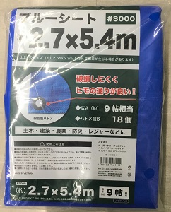 土木・建築・農業・防災・レジャーなどに 破損しにくくヒモの通りが良い 広さ:約9帖相当 ハトメ個数:18個 #3000 ブルーシート 2.7X5.4m 商品コード: 4580631461112 1,617円(税込) 数量 カートに入れる お気に入りに追加