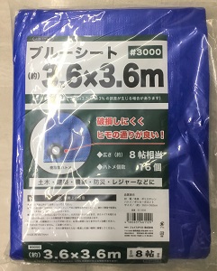 土木・建築・農業・防災・レジャーなどに 破損しにくくヒモの通りが良い 広さ:約8帖相当 ハトメ個数:16個 #3000 ブルーシート 3.6×3.6m 商品コード: 4580631461129 1,507円(税込) 数量 カートに入れる お気に入りに追加