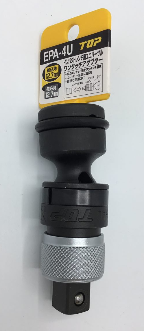 インパクトレンチ用ユニバーサルワンタッチアダプター ●12.7mmソケット類をワンタッチ着脱 ●首振り角度30度 ■商品サイズ:4×12×3 【DayPRO】トップ工業 TOP Uワンタッチアタプタ EPA4U【お取り寄せ商品】 商品コード: 4975180738240 6,017円(税込) 数量 カートに入れる お気に入りに追加