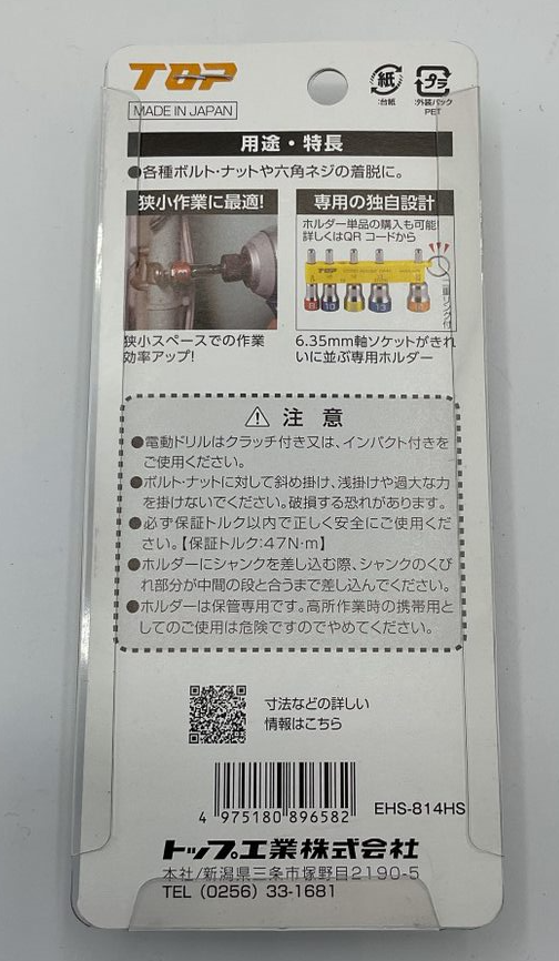 電動ドリル用ショートソケットセット ●狭所作業に最適なショートサイズ! ●各種ボルト・ナットや六角ネジの着脱に ●日本製 ■商品サイズ:80×180×20 【DayPRO】トップ工業 TOP Sソケットセット EHS814HS【お取り寄せ商品】 商品コード: 4975180896582 3,267円(税込) 数量 カートに入れる お気に入りに追加
