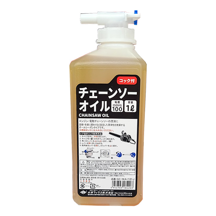 エンジン・電動チェーンソーの潤滑に 夏期・冬期に関わりなく安定した潤滑性を発揮するオールシーズンタイプです。 ※燃料タンクには入れないでください。 危険物の種別:第4類第4石油類 危険等級:Ⅲ チェンソーオイルコック付き1L ISOVG100 GC‐1KA 商品コード: 4952703184203 766円(税込) すぐ楽BOX不可 数量 すぐ楽BOX不可 カートに入れる お気に入りに追加