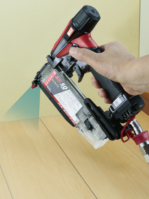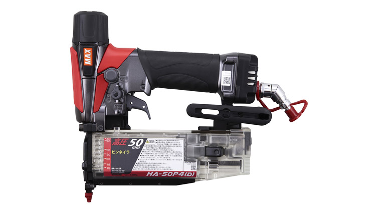 『溝打ち』も、『平打ち』も、仕上り安心! 『先端射出のエアダスタ(PAT)』で効率作業! コンタクトトップで最適作業! スリムな溝打用コンタクトトップ 「縦向き」はもちろん、「横向き」も打てる!※溝深さ2mm時 ますます便利に!使いやすく! 風量調整エアダスタ機構(PAT) 片手で調節、風量調節機構付 ホコリを外に吹き飛ばしたいときに強く! ホコリを舞上げたくないときは弱く! ボタンの押し加減でお好みの風量調整が可能! ボタンを押すストロークで、風量が調整可能に! 安定した打込みとキレイな仕上がり! 優しく安定押し付け 平打ち用コンタクトトップ 杉など柔らかい部材でも先端の押し付け跡が付きにくい! キレイな仕上がり ドライバ先端のストレート形状でドライバ跡が付きにくい! 部材硬さの違いによる浮き沈みに、仕上がりが左右されません。 【DayPRO】MAX 釘打機 高圧ピンネイラ HA-50P4(D) 商品コード: 4902870822910 60,170円(税込) 数量 カートに入れる お気に入りに追加 寸法 高さ(H)×幅(W)×長さ(L) 209×64×261(mm) 質量 1.2kg ピン装填本数 100本(最大約130本) ピンネイル足長さ 15・19・25・30・35・45・50(mm) 使用空気圧 1.2〜2.3MPa(約12〜23kgf/cm2) 使用ホース マックススーパーエア・ホースシリーズ 安全装置 メカニカル方式、トリガロック装置 装備品 六角棒スパナ3mm、コンタクトトップ(溝打用、平打用各1個)、シリンダキャッププロテクタ 付属品 保護メガネ、油さし、キャリングケース