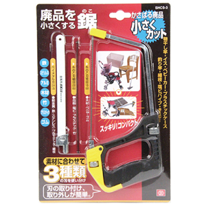 ■ご家庭でいらなくなったかさばる廃品を小さくカット ■木材、合板、竹、塩ビ、プラスチック、ゴム、アルミ、軽金属、ステンレスの切断ができます ■物干し竿、木製イス、パイプイス、ベビーカー、プラスチックケース、釣竿、細枝、塩ビパイプ等の切断に 【刃の種類】 ・糸のこ刃細目28山:合板、塩ビ、プラスチック、竹の切断に ・糸のこ刃荒目16山:木材、ベニヤ、ゴムの切断に ・バイメタル刃24山:軽金属、鉄、ステンレス、プラスチック、細枝の切断に 【材質】ハンドル部:ナイロン+ABS樹脂 廃品を小さくする鋸 SHCS-3 商品コード: 4977292109109 2,167円(税込) 数量 カートに入れる お気に入りに追加