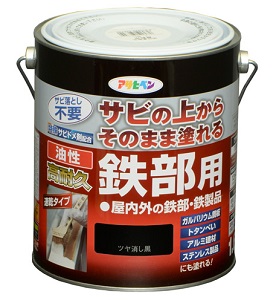 特殊強力サビドメ剤がサビの進行を抑え、長期間鉄部をサビから保護します。 シリコンアクリル樹脂の採用で耐候性に優れています。 密着力が強く、ガルバリウム鋼板やトタン、アルミ、ステンレスにも塗装できます。 1回塗りで仕上がりますので、作業性が抜群です。 アサヒペン 高耐久鉄部用 ツヤ消し黒 1.6L 商品コード: 4970925526748 6,017円(税込) すぐ楽BOX不可 数量 すぐ楽BOX不可 カートに入れる お気に入りに追加 ・用途:扉・フェンス・シャッター・パイプ・機械器具・農機具などの屋内外の鉄部、鉄製品。ガルバリウム鋼板やアルミ、ステンレスなどにも塗装できます。 ・乾燥時間:夏期/1.5〜2時間・冬期/5〜6時間 ・標準塗り面積(1回塗り):13〜18平方メートル ・サイズ(mm):W150×D150×H170 ・重量(g):2400g