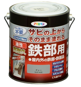 特殊強力サビドメ剤がサビの進行を抑え、長期間鉄部をサビから保護します。 シリコンアクリル樹脂の採用で耐候性に優れています。 密着力が強く、ガルバリウム鋼板やトタン、アルミ、ステンレスにも塗装できます。 1回塗りで仕上がりますので、作業性が抜群です。 アサヒペン 高耐久鉄部用 グレー 1.6L 商品コード: 4970925526793 6,017円(税込) すぐ楽BOX不可 数量 すぐ楽BOX不可 カートに入れる お気に入りに追加 ・用途:扉・フェンス・シャッター・パイプ・機械器具・農機具などの屋内外の鉄部、鉄製品。ガルバリウム鋼板やアルミ、ステンレスなどにも塗装できます。 ・乾燥時間:夏期/1.5〜2時間・冬期/5〜6時間 ・標準塗り面積(1回塗り):13〜18平方メートル ・サイズ(mm):W150×D150×H170 ・重量(g):2400g