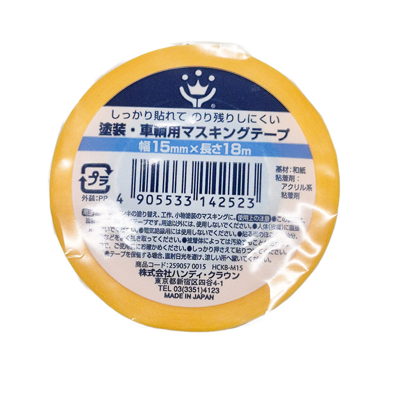 アクリル系粘着剤で、のり残りもしにくいマスキングテープです。 屋内外のペンキの塗り替え 工作・小物塗装のマスキングに! 材質/素材 ●基材:和紙●粘着剤:アクリル系粘着剤 ハンディクラウン 塗装・車両マスキングテープ 1P 15×18m 商品コード: 4905533142523 194円(税込) 数量 カートに入れる お気に入りに追加