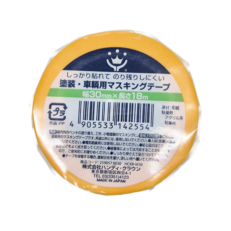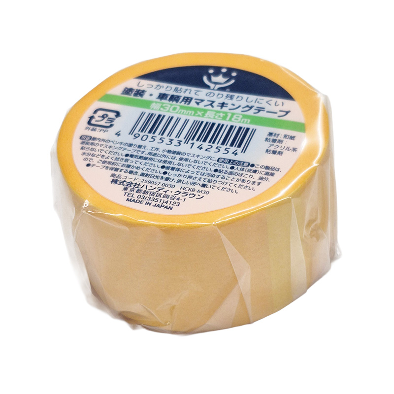 アクリル系粘着剤で、のり残りもしにくいマスキングテープです。 屋内外のペンキの塗り替え 工作・小物塗装のマスキングに! 材質/素材 ●基材:和紙●粘着剤:アクリル系粘着剤 ハンディクラウン 塗装・車両マスキングテープ 1P 30×18m 商品コード: 4905533142554 326円(税込) 数量 カートに入れる お気に入りに追加