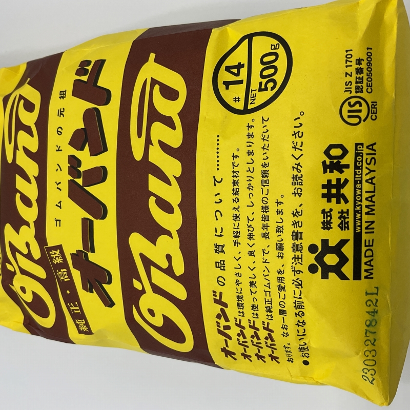 ●サイズ #14(内径:32mm/折径:50mm/切幅:1.1mm) ●材質 天然ゴム ●容量 500g(約4,100本) ※本数は100g当りの平均値から求めています。 誤差が見込まれますのでご了承ください。 オーバンド500g #14 商品コード: 4971620201459 1,397円(税込) 数量 カートに入れる お気に入りに追加