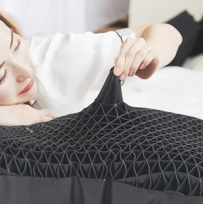 ・驚くほど柔らかい新素材TPEと三角格子構造が組み合わさることにより、これまでの枕では実現しにくかった広範囲の圧力分散効果を可能にしました。