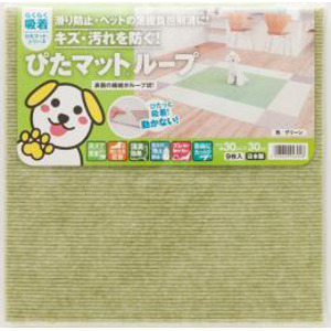 ■裏面が床にぴたっとくっつく加工がしてあるずれないマット ■洗えて清潔。 ■消臭効果あり。 ■自由にカットもできます。 ワタナベ工業 吸着ぴたマットループ 9枚入 30×30cm グリーン 商品コード: 4903620946948 1,096円(税込) 数量 カートに入れる お気に入りに追加 【商品サイズ】W30×H30cm 【素材・材質】表面:ポリエステル100%・裏面:アクリル樹脂