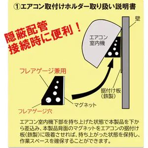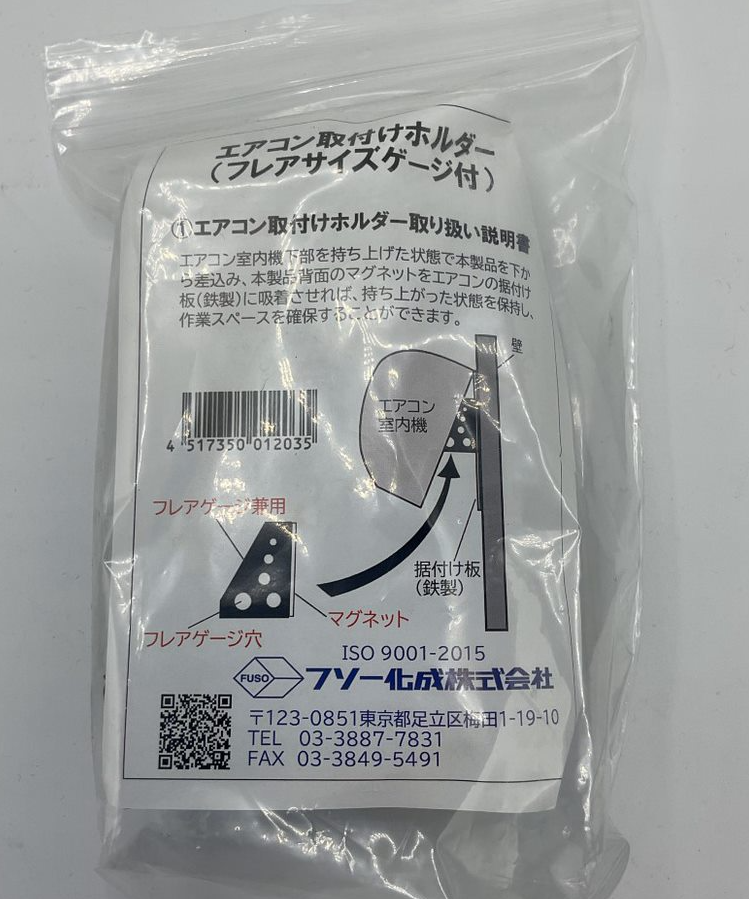 エアコン取付けホルダー(フレアサイズゲージ付) 隠蔽配管接続時に便利! 隠蔽配管工事等の際に室内機を持ち上げた状態をキープして作業スペースを確保するエアコン取付けホルダーと、フレア加工が適切なサイズかどうかをチェックするフレアサイズゲージを一体化! ■商品サイズ:90×30×170 【DayPRO】フソー化成 エアコン取付けホルダー FAH-FG【お取り寄せ商品】 商品コード: 4517350012035 986円(税込) 数量 カートに入れる お気に入りに追加