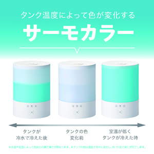 ・タンクの温度によって色が変化する! ・上から直接給水できるカンタン給水。 ・タンクに直接アロマオイルを入れられる素材を使用 ・凹凸が少なく洗いやすいタンクでお手入れ簡単 ドウシシャ サーモカラー 超音波式加湿器 KWA-202WH ホワイト 商品コード: 4550668655266 4,367円(税込) すぐ楽BOX不可 数量 すぐ楽BOX不可 カートに入れる お気に入りに追加 ・対応畳数約:プレハブ6畳/木造3畳 ・アロマオイル対応 ・ムードランプ機能 ・切タイマー:2/4/8時間 ・電源:DC 24V ACアダプター(付属) ・消費電力:24W ・加湿方式:超音波式 ・加湿性能:1時間あたり《強》:約200ml、《中》:約130ml、《弱》:約100ml ・連続加湿時間:約10時間 ・最大使用水量:約2.5L ・電源コード長さ:約1.5m ・外径寸法:約幅18.0×奥行き18.0×高さ25.5cm ・質量:約800g ・付属品:取扱説明書・保証書×1、ACアダプター×1