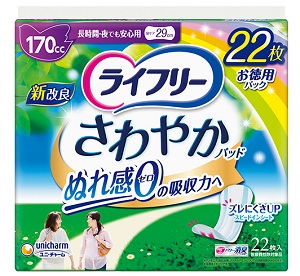 ・尿成分研究から生まれた、「スピードインシート」で、出た瞬間から表面に残る間もなく、ぬれ感ゼロの吸収力へ。 吸収量 170cc 長さ 29cm 1.ズレにくさUP! 幅広ズレ止めテープで、モレ安心! 2.横モレを防ぐ立体ギャザー 3.ニオイを閉じ込める消臭ポリマー*配合 パウダー系の香り ユニ・チャーム ライフリー さわやかパッド 長時間・夜でも安心用 170cc 22枚 商品コード: 4903111560103 1,177円(税込) 数量 カートに入れる お気に入りに追加