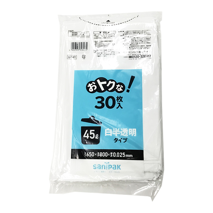 ・サイズ:ヨコ650×タテ800×厚み0.025mm ・非食品用 ・原料樹脂:ポリエチレン ・耐冷温度:-30度 日本サニパック おトクな!ゴミ袋 U44T 白半透明 45L 30枚 商品コード: 4902393326445 546円(税込) すぐ楽BOX不可 数量 すぐ楽BOX不可 カートに入れる お気に入りに追加
