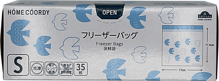 開口部の前後の段差が大きく開けやすい。 プチッと音が鳴り、閉めた感覚がわかる。 Wジッパー部の間隔が狭く、しっかり指で挟めて閉めやすい。 ※冷凍・電子レンジ解凍可。 ※電子レンジほか加熱調理不可。 中国製 ■素材 ポリエチレン ■サイズ 幅170×高さ174×厚さ0.06mm Sサイズ 35枚入り ■耐熱・耐冷温度 耐熱温度:70℃ 耐冷温度:-30℃ トップバリュ フリーザーバッグ S トリ 商品コード: 4549414389371 327円(税込) 数量 カートに入れる お気に入りに追加