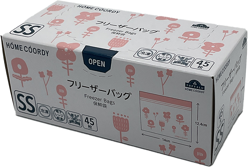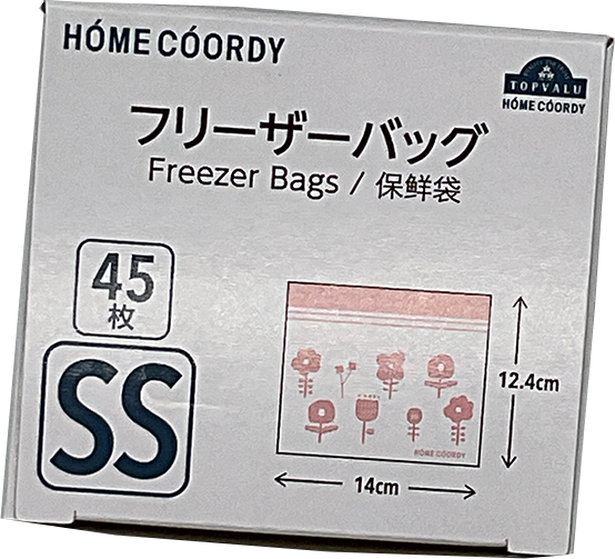 開口部の前後の段差が大きく開けやすい。 プチッと音が鳴り、閉めた感覚がわかる。 Wジッパー部の間隔が狭く、しっかり指で挟めて閉めやすい。 ※冷凍・電子レンジ解凍可。 ※電子レンジほか加熱調理不可。 中国製 ■素材 ポリエチレン ■サイズ 幅140×高さ124×厚さ0.06mm SSサイズ 45枚入り ■耐熱・耐冷温度 耐熱温度:70℃ 耐冷温度:-30℃ トップバリュ フリーザーバッグ SS ハナ 商品コード: 4549414389364 327円(税込) 数量 カートに入れる お気に入りに追加