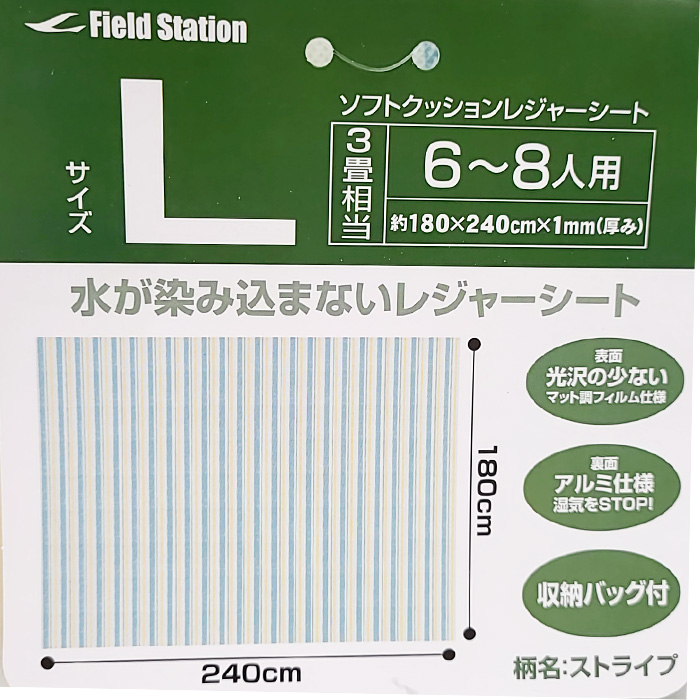 ソフトクッションレジャーシート L:(約)180×240cm ストライプ