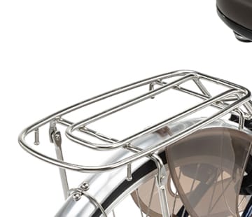 ■ステンレスリアキャリア搭載。※後子乗せを装着する場合は、リアキャリアに組み替えてください。また、かろやかスタンドに組み替えることをお勧めします。