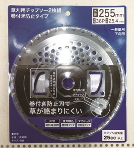 ・巻き付防止刃付で草が絡まりにくい チップソー2枚組 巻付防止タイプ 255x36P 商品コード: 4580631466605 2,167円(税込) すぐ楽BOX不可 数量 すぐ楽BOX不可 カートに入れる お気に入りに追加