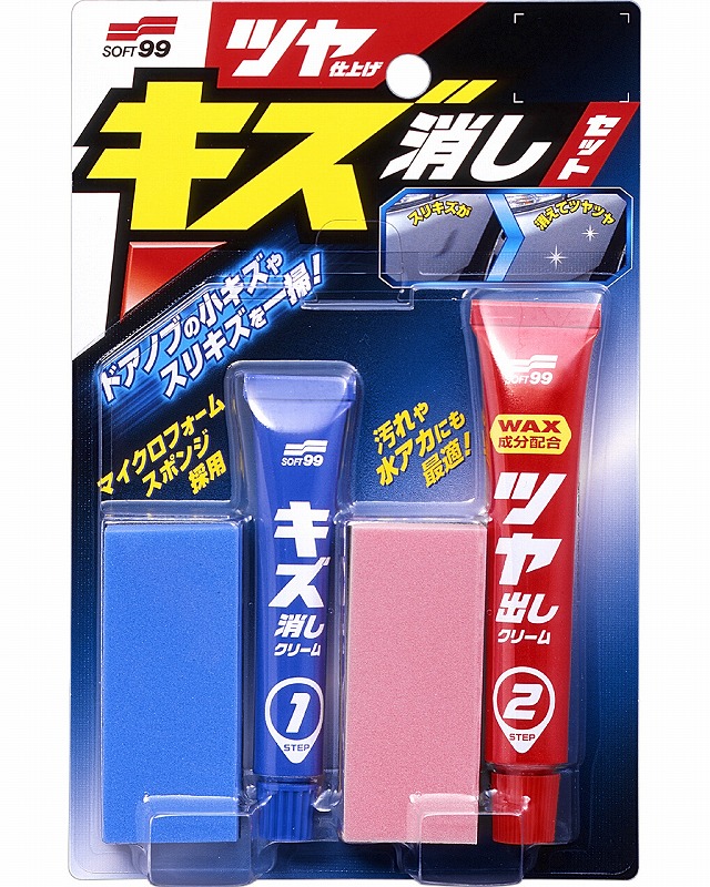 軽微なキズやクスミなどのトラブルを手軽にリカバリーできる2ステップのキズ消しセット。中細タイプのキズ消しクリームと極細タイプのツヤ出しクリームの2種類と均一な力で研磨できるコンパウンド専用スポンジをセット。全塗装色に使用できる。 ソフト99 ツヤ仕上げ キズ消しセット 00286 商品コード: 4975759002864 847円(税込) 数量 カートに入れる お気に入りに追加