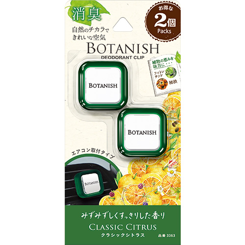 天然消臭成分「柿渋エキス」と「フィトンチッド」を配合したエアコンルーバー取付タイプの消臭剤。 ボタニカルの恵みで車内がさわやかに。車の内装に馴染むシンプルデザイン。 晴香堂 ボタニッシュ エア2個パック クラシックシトラス 3363 商品コード: 4976363126762 957円(税込) 数量 カートに入れる お気に入りに追加
