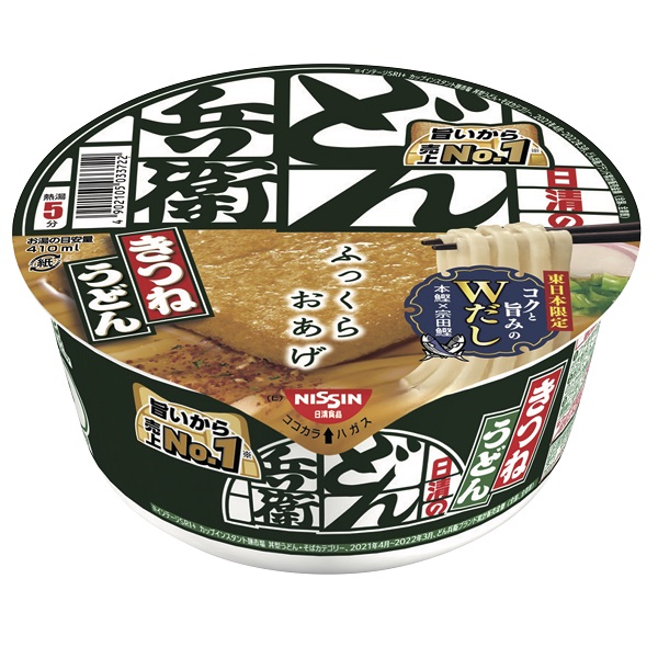 ■本鰹と宗田鰹の2種のかつおだしと丸大豆醤油を使用したつゆ。 ■豆腐屋さんと同じ製法で作った丸大豆100%のおあげが特長のきつねうどんです。 日清のどん兵衛 きつねうどん 1ケース(96g×12個) 商品コード: 4902105032633 2,268円(税込) すぐ楽BOX不可 数量 すぐ楽BOX不可 カートに入れる お気に入りに追加 【原材料名】油揚げめん(小麦粉(国内製造)、植物油脂、食塩、植物性たん白、こんぶエキス、大豆食物繊維、糖類)、かやく(味付油揚げ、かまぼこ)、スープ(食塩、糖類、魚粉(そうだかつお、にぼし、かつお)、粉末しょうゆ、かつおぶし調味料、デキストリン、七味唐辛子、ねぎ)/加工でん粉、調味料(アミノ酸等)、増粘剤(アラビアガム)、炭酸Ca、リン酸塩(Na)、カラメル色素、香料、香辛料抽出物、酸味料、酸化防止剤(ビタミンE)、乳化剤、パプリカ色素、クチナシ色素、ビタミンB2、ビタミンB1、ベニコウジ色素、(一部に小麦・乳成分・ごま・さば・大豆・ゼラチンを含む) 【栄養成分表示】1食 (96g) 当たり 熱量421kcal、たんぱく質9.9g、脂質17.4g、炭水化物56.1g、食塩相当量5.0g、ビタミンB1 0.20mg、ビタミンB2 0.22mg、カルシウム203mg 【アレルゲン情報】小麦・乳成分・さば・大豆・ごま・ゼラチン