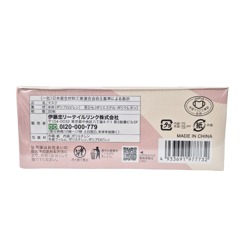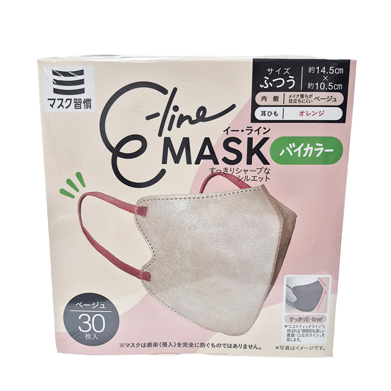 エステティックライン(E-line)と呼ばれる「理想的な美しい横顔・口元ライン」を再現したE-line MASK。 カラー 内側:メイク落ちが目立ちにくいベージュ 耳ひも:オレンジ *内側(口元側)不織布は、メイク汚れが目立ちにくいカラータイプ(マスク本体色がホワイトの場合は、口元もホワイト) 本体サイズ: ふつうサイズ 約145×105mm 素材:本体:ポリプロピレン 耳紐:ポリエステル・ポリウレタン 伊藤忠リーテイル イーラインマスク ベージュ×オレンジ 30枚入 商品コード: 4933691977732 656円(税込) すぐ楽BOX不可 数量 すぐ楽BOX不可 カートに入れる お気に入りに追加