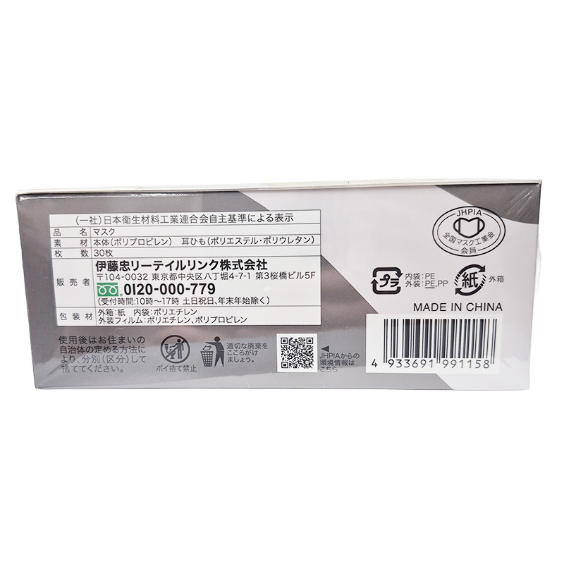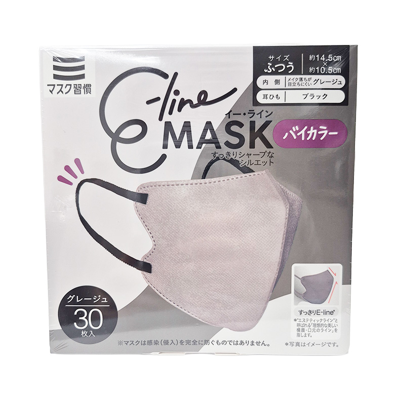 エステティックライン(E-line)と呼ばれる「理想的な美しい横顔・口元ライン」を再現したE-line MASK。 カラー 内側:メイク落ちが目立ちにくいグレージュ 耳ひも:ブラック *内側(口元側)不織布は、メイク汚れが目立ちにくいカラータイプ(マスク本体色がホワイトの場合は、口元もホワイト) 本体サイズ: ふつうサイズ 約145×105mm 素材:本体:ポリプロピレン 耳紐:ポリエステル・ポリウレタン 伊藤忠リーテイル イーラインマスク グレージュ×ブラック 30枚入 商品コード: 4933691991158 656円(税込) すぐ楽BOX不可 数量 すぐ楽BOX不可 カートに入れる お気に入りに追加