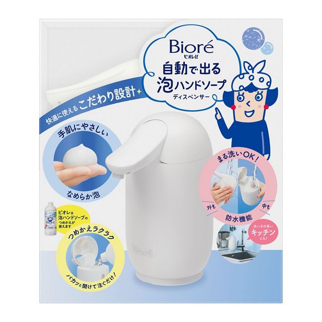 手洗いをもっと快適に! なめらか泡が自動で出てくる。まる洗いできる防水仕様。 ポンプとほぼ同じコンパクトサイズ。ビオレu泡ハンドソープのつめかえが使える。 泡量を2段階に設定できる。 手を引くと途中でも泡が止まる。 パカッと蓋を開けて注ぐだけの簡単つめかえ。 滑り止め付きで倒れにくい。 容量 430ml 花王 ビオレu 自動で出る泡ハンドソープディスペンサー 本体+つめかえ用430ml 商品コード: 4901301430823 2,827円(税込) すぐ楽BOX不可 数量 すぐ楽BOX不可 カートに入れる お気に入りに追加