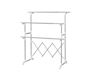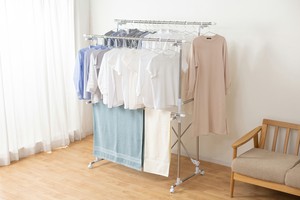 ■干す量やスペースに合わせて、幅も高さも調節可能な大型伸縮タイプの室内物干しです。
