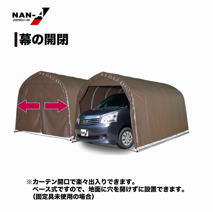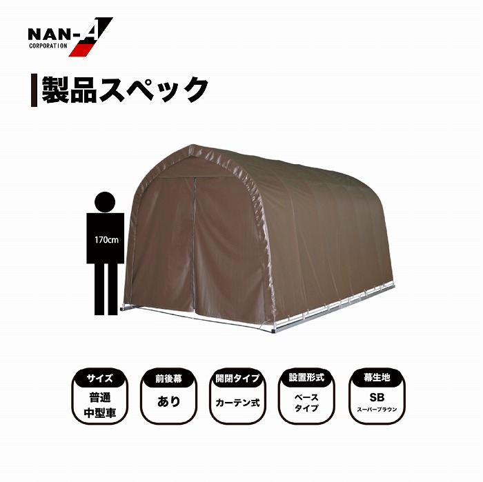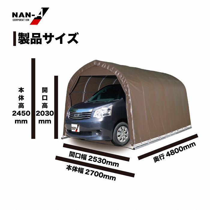 ・お客様組立品 ・パイプ車庫の角ベースタイプの普通車用モデル ・耐久性のあるPVC生地のブラウン色 ・前幕カーテン式タイプ ・固定用の杭が16本付属してます ・車庫以外にも簡易的な倉庫などの用途に使用できます ・前幕カーテン式 ・角パイプベース式 ・固定杭16本付属 ・シートはPVC生地 ・耐久年数目安3年(設置条件及び使用条件により異なります) 南栄工業 パイプ車庫2748B SB ブラウン【お取り寄せ商品】 商品コード: 4984665179812 117,700円(税込) すぐ楽BOX不可 宅配便不可 数量 すぐ楽BOX不可 宅配便不可 カートに入れる お気に入りに追加 【製品寸法(約寸)】 間口 270cm×奥行 480cm×高さ245cm 【梱包サイズ】 (A)幅34.5×奥161×高15cm:20kg (B)幅17.5×奥170×高17cm:22kg (C)幅18×奥203×高16cm:25kg (D)幅22.5×奥203×高10cm:21kg (E) 幅39×奥50×高21cm:19kg ※注意事項 ・組立作業は2人以上で行ってください。 ・積雪地帯は除雪作業が必要です。 ・台風などの強風が予想される際は事前に幕を外してください。 ・天幕の張りがあまいとシートが風で劣化しやすくなります。また、積雪時には車庫の倒壊の原因になる恐れがあります。