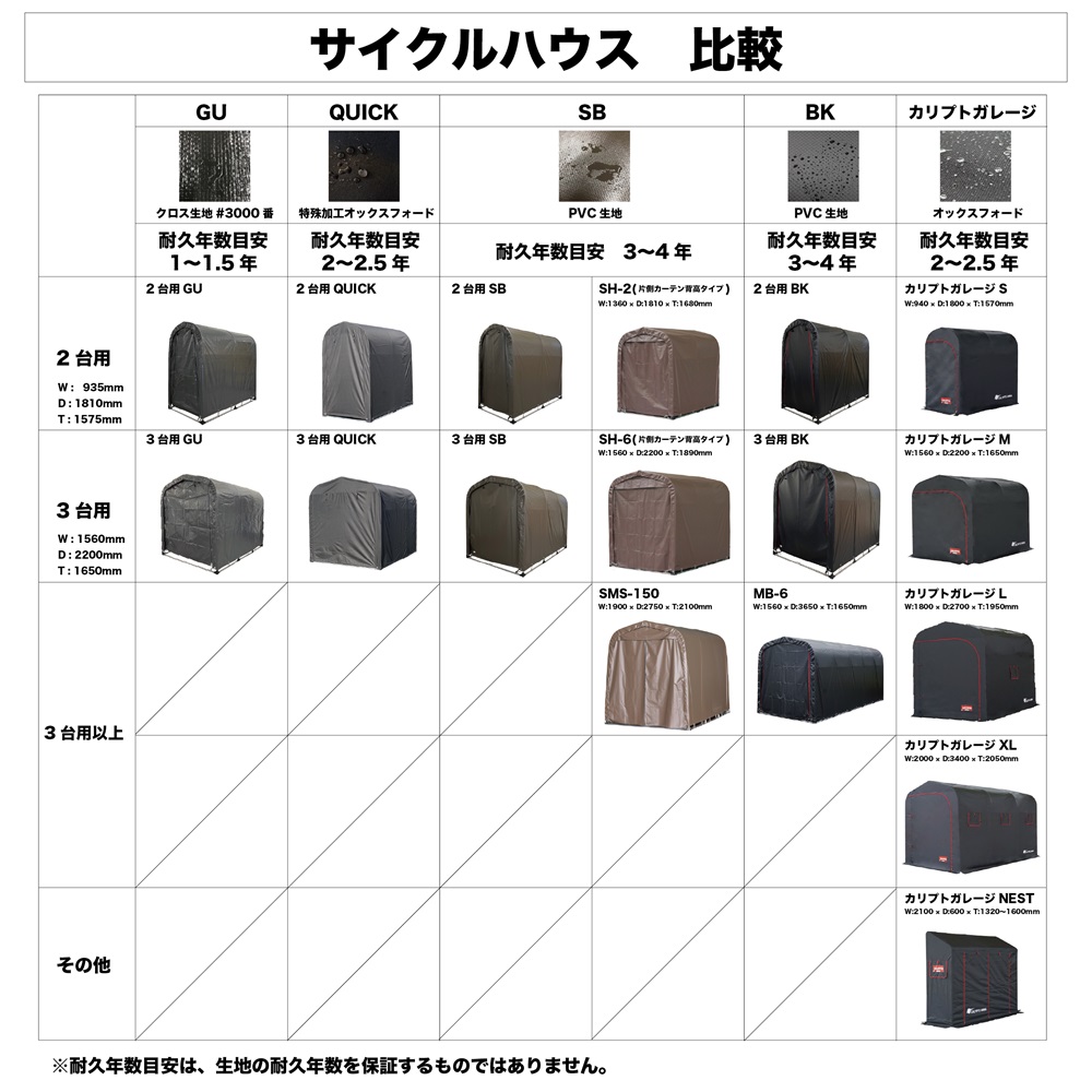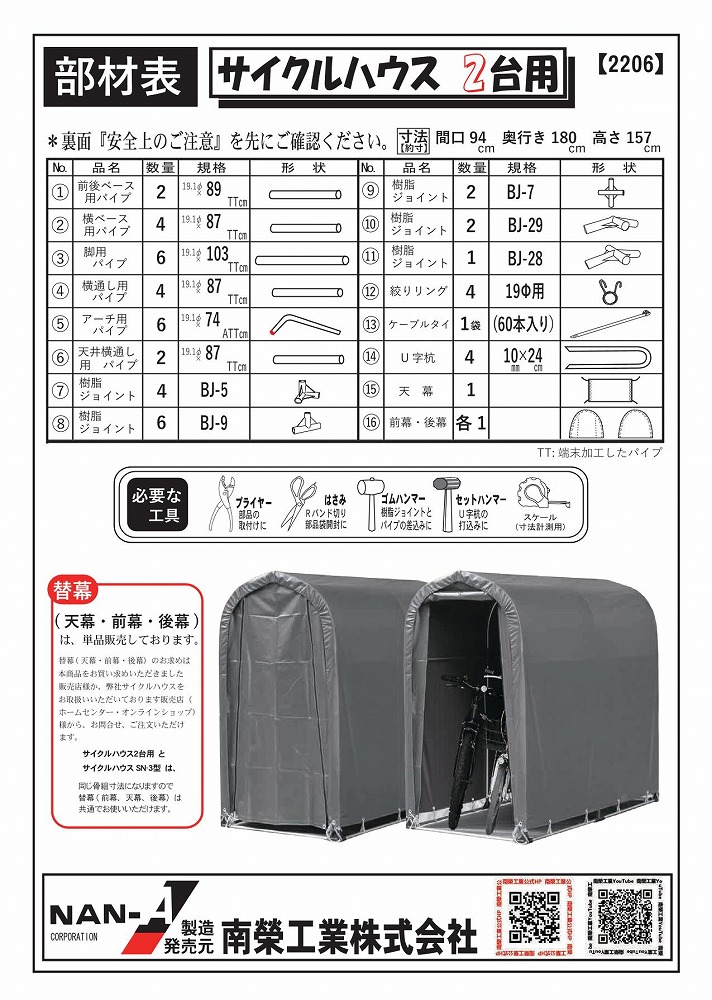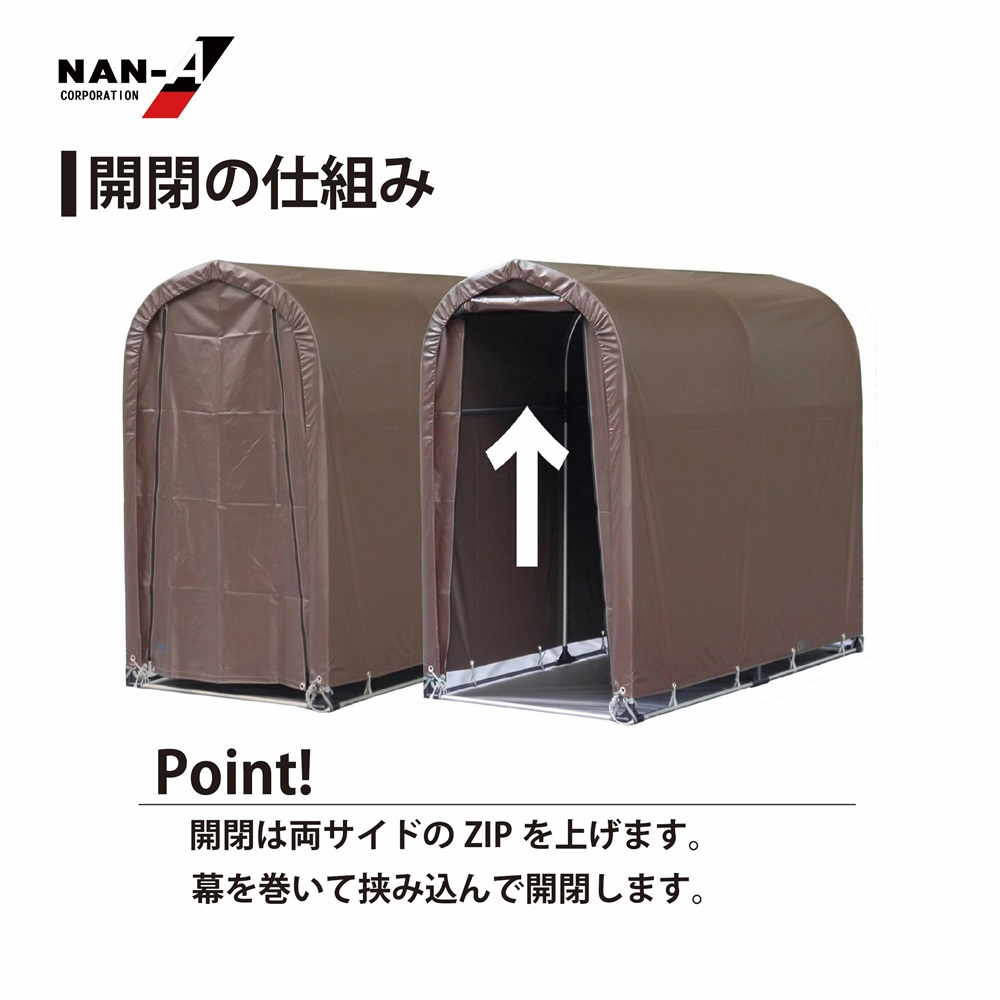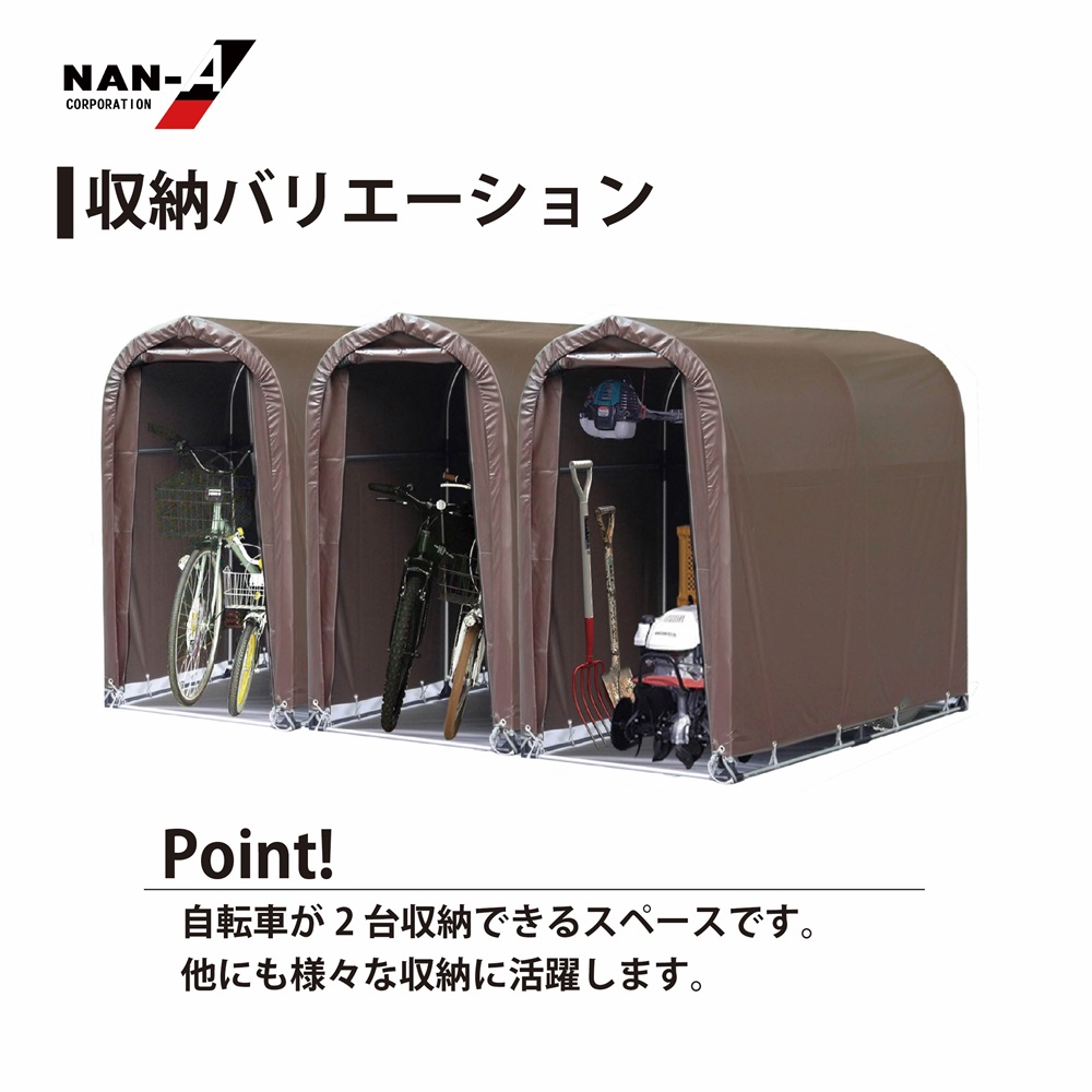 ・お客様組立品。 ・サイクルハウスのロングセラー商品です。 ・耐久性のあるターポリンシートのブラウンを使用。 ・製品寸法(約寸):間口 94cm×奥行 180cm×高さ157cm ・前幕巻上式 ・ベースタイプ ・固定杭4本付属 ※注意事項 ・風でサイクルハウスが動かないように付属のU字杭などで固定や風対策をお願いします。 ・積雪時は除雪をお願いします。 南栄工業 サイクルハウス 2台用 SB ブラウン【お取り寄せ商品】 商品コード: 4984665141482 24,970円(税込) すぐ楽BOX不可 宅配便不可 数量 すぐ楽BOX不可 宅配便不可 カートに入れる お気に入りに追加