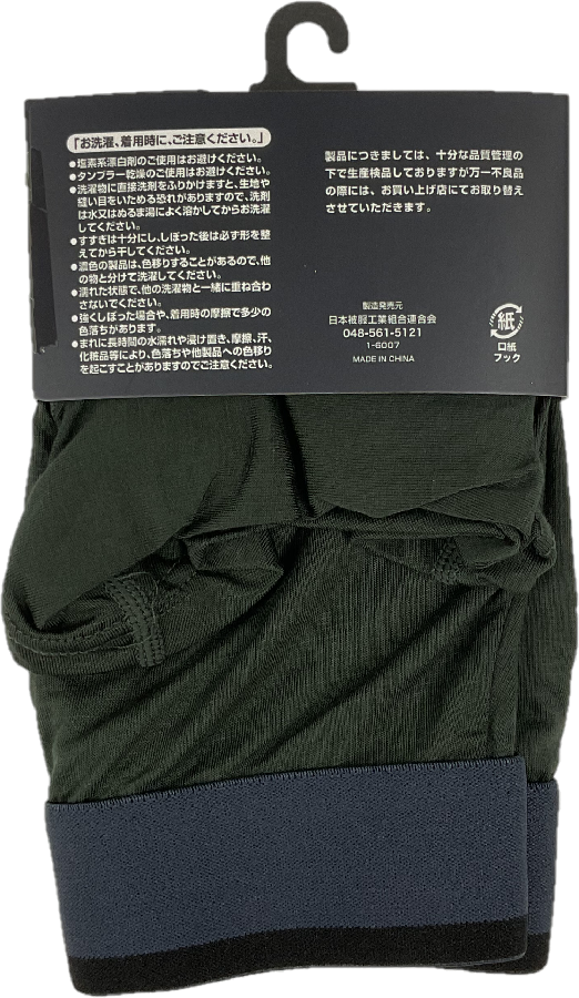 ウエスト76~84 本体レーヨン93%(レーヨン53%再生繊維(リヨセル)40%) ウエストゴム部分 ポリエステル100% 紳士1Pリヨセルボクサーブリーフ Mカーキ 商品コード: 4549138689658 656円(税込) すぐ楽BOX不可 数量 すぐ楽BOX不可 カートに入れる お気に入りに追加