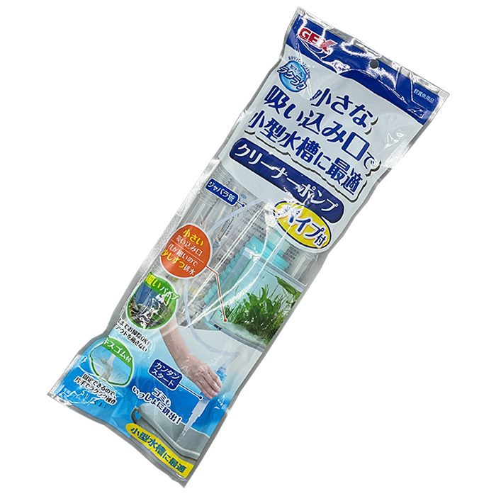 水換え&お掃除がスピーディに! シュポシュポするだけで、水と一緒にゴミを排出! 定期的に水替えを行いキレイな水槽を保ちましょう。 接続部がない一体型の丈夫なジャバラ管なので水漏れしにくく、給水口を水槽内にしっかり固定するキスゴム付きなので片手で操作が可能。 本体サイズ 全長約147cm 適合水槽 小型水槽 個装サイズ/重量 幅15.5×奥行5.5×高さ44cm/75g ジェックス おそうじラクラククリーナー ポンプパイプ付き(小型水槽向け) 商品コード: 4972547036469 601円(税込) すぐ楽BOX不可 数量 すぐ楽BOX不可 カートに入れる お気に入りに追加