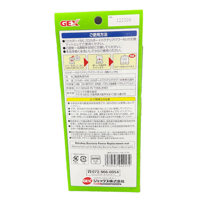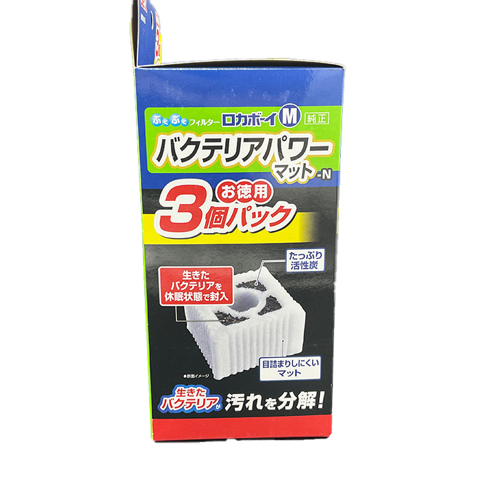 ※魚病薬などの薬品類をご使用の際は、ろ過材内の活性炭が薬品類の有効成分を吸着し、効果がなくなりますのでご注意ください。