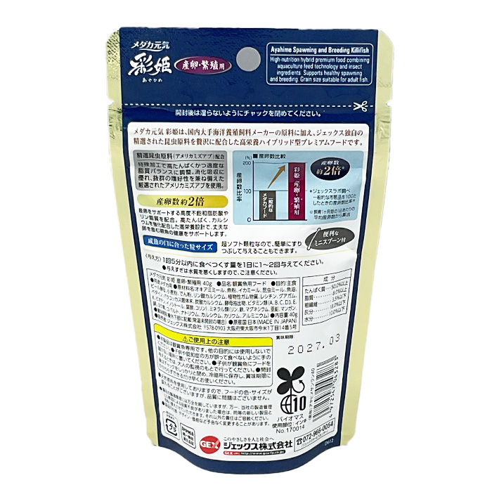 ・産卵をサポートする高度不飽和脂肪酸やリン脂質を配合。
