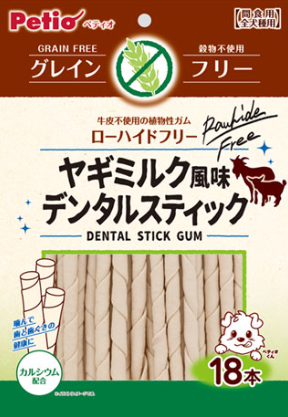 ■牛皮不使用の植物性ガム。濃厚な味わいのヤギミルク入りで食いつき抜群。