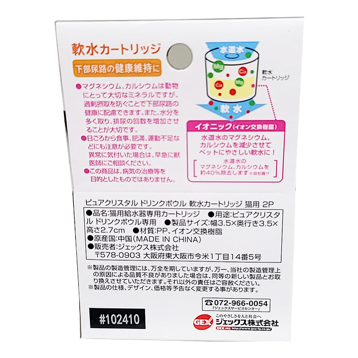 ピュアクリスタルドリンクボウル専用交換軟水カートリッジ。 健康維持のためにカートリッジは1ヶ月をめどに必ず交換してください。 内容量 2個 個装サイズ/重量 幅75×奥行40×高さ110mm/50g ピュアクリスタル ドリンクボウル 軟水カートリッジ猫用2P 商品コード: 4972547925534 711円(税込) すぐ楽BOX不可 数量 すぐ楽BOX不可 カートに入れる お気に入りに追加 SUN急便対応エリアか調べる お届け先がSUN急便配達対応エリアか確認できます 郵便番号を入力 - 確認する 商品を探す キーワードで絞り込む 価格で絞り込む 〜 円 検索する カテゴリで絞り込む ペット用品 犬用品 ドッグドライフード ドッグウェットフード ドッグスナック ペットシーツ 犬用トイレ 犬用オムツ 散歩用品 犬用玩具 犬用食器・給水器 犬用しつけ用品 犬用ケージ・サークル 犬用シャンプー・リンス 犬用消臭剤 猫用品 キャットドライフード キャットウェットフード キャットスナック 爪磨き 猫用首輪 猫用玩具 猫用食器・給水器 キャットタワー 猫用ケージ 猫用消臭剤 猫用トイレ用品 小動物用品 ウサギ用品 ハムスター用品 フェレット用品 鳥用品 その他の小動物 観賞魚用品 観賞魚フード 観賞魚水槽 観賞魚フィルター・ろ過材 観賞魚エアーポンプ 観賞魚ヒーター・温度計 観賞魚ライト 観賞魚アクセサリー・床材 観賞魚清掃用品 観賞魚水質調整用品 カメ用品 昆虫用品 昆虫フード 昆虫マット 昆虫飼育用品 虫あみ・かご 昆虫飼育セット ペットお手入れ用品 ペット防虫用品 トリミング用品 お手入れ用品 ペットベッド・マット ペットキャリー キャリー カート 商品カテゴリ サンデーおすすめ品 防災用品 自転車 行楽用品 マスク・防疫対策品 農業資材 園芸・ガーデニング用品 省エネ・節約グッズ アウトドア・スポーツ 暖房用品 防犯用品 空調機器 作業衣料 カー用品 ペット用品 日用消耗品 話題の大容量タイプ 塗料・補修・梱包 木材・建材 建築金物 作業工具 電化製品 家具・収納用品 インテリア・寝具 スキンケア・ヘアケア 清掃・洗濯用品 調理・キッチン用品 住設機器 OA用品・文具 食品・飲料 ヘルスケア 青森県のうまいもん! 歳時品 時計・メガネ用品 おすすめ商品 EcoFlow(エコフロー) ポータブル電源 DELTA3Plus(デルタ3プラス) EFDELTA3PJPCBO【お取り寄せ商品】 109,670円(税込) 【在庫限りの限定特価】マルカン お手入れラクラクサークルL DP-925 11,000円(税込) 【ネットショップ限定特価】ショップジャパン トゥルースリーパープレミアム福箱セット(マットレス+セブンスピロー)【お一人様1点限り】 17,270円(税込) アイリスオーヤマ 防災リュックセット33点 BRS-33 ブラック 5,467円(税込) アイリスオーヤマ ペット用防災セット 猫用15点 PBSN-15 4,367円(税込) アイリスオーヤマ ペット用防災セット 犬用15点 PBSI-15 4,367円(税込)