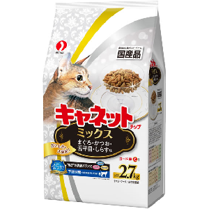 ■国産第一号のドライキャットフードとしてロングセラーを誇るシリーズ。 ■猫の健康維持に必要な栄養素をバランスよく配合。 ■食べやすい粒サイズとサクサクとした食感。 ■“まぐろ、かつお、舌平目、しらす”の4つのお魚の旨みたっぷり! ■キャネットの大定番ミックス。 ペットライン キャネットチップ ミックス 2.7kg 商品コード: 4902418518022 957円(税込) 数量 カートに入れる お気に入りに追加 【原材料】穀類(とうもろこし、菓子粉、コーングルテンミール、等)、肉類(ミートミール、チキンミール、チキンレバーパウダー、等)、豆類(おから、脱脂大豆、等)、魚介類(フィッシュミール:DHA・EPA源、フィッシュエキス、まぐろエキス、かつおエキス、舌平目エキス、しらすエキス、等)、油脂類(動物性油脂 、ガンマ-リノレン酸、等)、ビール酵母、卵類(ヨード卵粉末)、ビタミン類(A、D3、E、K3、B1、B2、パントテン酸、ナイアシン、B6、葉酸、ビオチン、B12、コリン、イノシトール)、ミネラル類(カルシウム、リン、ナトリウム、カリウム、塩素、鉄、コバルト、銅、マンガン、亜鉛、ヨウ素)、アミノ酸類(メチオニン、タウリン)、着色料(赤102)、酸化防止剤(ローズマリー抽出物、ミックストコフェロール) 【成分】たんぱく質27.0%以上、脂質9.0%以上、粗繊維4.5%以下、粗灰分9.0%以下、水分10.0%以下 【エネルギー】約350kcal(100g当たり)