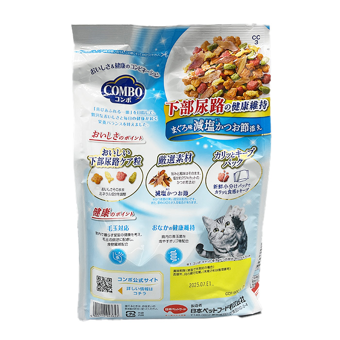まぐろのおいしさたっぷりの4種粒に塩分約25%カットの減塩かつお節を添えました。(コンボ キャット使用かつお節比)