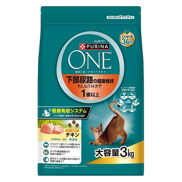 ・尿路の健康維持をサポート。 ・ミネラルバランスを調整し、尿路結石の形成の抑制をサポート。 ・オメガ3脂肪酸配合で尿路の健康ケア。 ・適切なリンと抗酸化成分の配合で腎臓の健康ケア。 ・3つの栄養素の特別な配合「健康免疫システム」で健康を保ち免疫力を維持。 ネスレ日本 ピュリナワン 猫 下部尿路 F.L.U.T.H.ケア 1歳以上 チキン 3kg 商品コード: 4902201218306 3,267円(税込) すぐ楽BOX不可 数量 すぐ楽BOX不可 カートに入れる お気に入りに追加 原材料:チキン、チキンミール、とうもろこしたんぱく、とうもろこし、米、小麦、鶏脂(オメガ6脂肪酸源)、大豆粉、フィッシュミール、小麦たんぱく、たんぱく加水分解物、可溶性食物繊維、魚油(オメガ3脂肪酸源)、酵母(βグルカン源)、ミネラル類(カルシウム、リン、カリウム、ナトリウム、クロライド、マグネシウム、鉄、銅、マンガン、亜鉛、ヨウ素、セレン)、ビタミン類(A、D、E、K、B1、B2、パントテン酸、ナイアシン、B6、葉酸、ビオチン、B12、コリン、C)、アミノ酸類(メチオニン、タウリン)