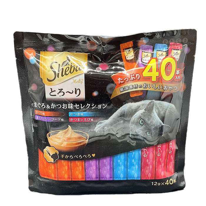 猫ちゃんが手からでも舐めやすい、贅沢なおいしさの“とろ~り"おやつ。人気の4種をたっぷり入れたセレクションの大容量タイプ。