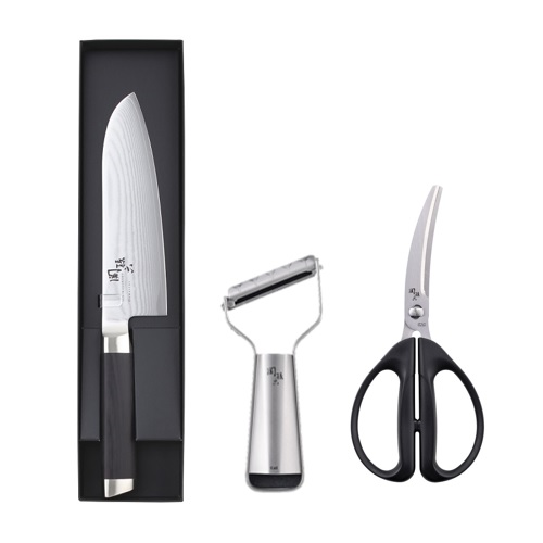 【サンデーネットショップ限定】貝印 関孫六特別3点セット(ダマスカス三徳包丁、レギュラーカーブキッチン鋏、オールステンレス鋭角ピーラー 極刃)【お取り寄せ】
