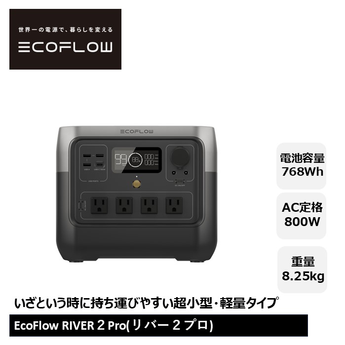 EcoFlow(エコフロー) ポータブル電源 RIVER2Pro(リバー2プロ) ZMR620-B-JP【お取り寄せ商品】